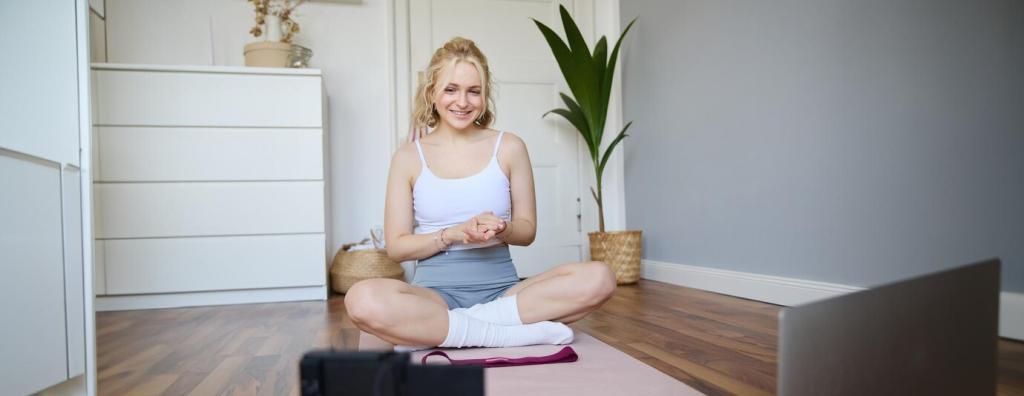 Lege eine gerollte Decke unter die Knie, bedecke dich mit einer leichten Decke. Augen schließen, Kiefer lösen. Lass die Schwerkraft arbeiten. Stell dir vor, jede Ausatmung legt ein Gewicht ab. Erzähle uns, ob Musik oder Stille dich besser begleitet.